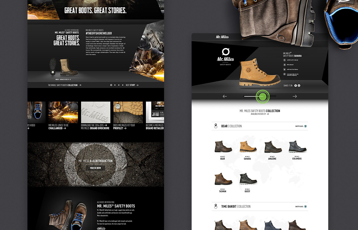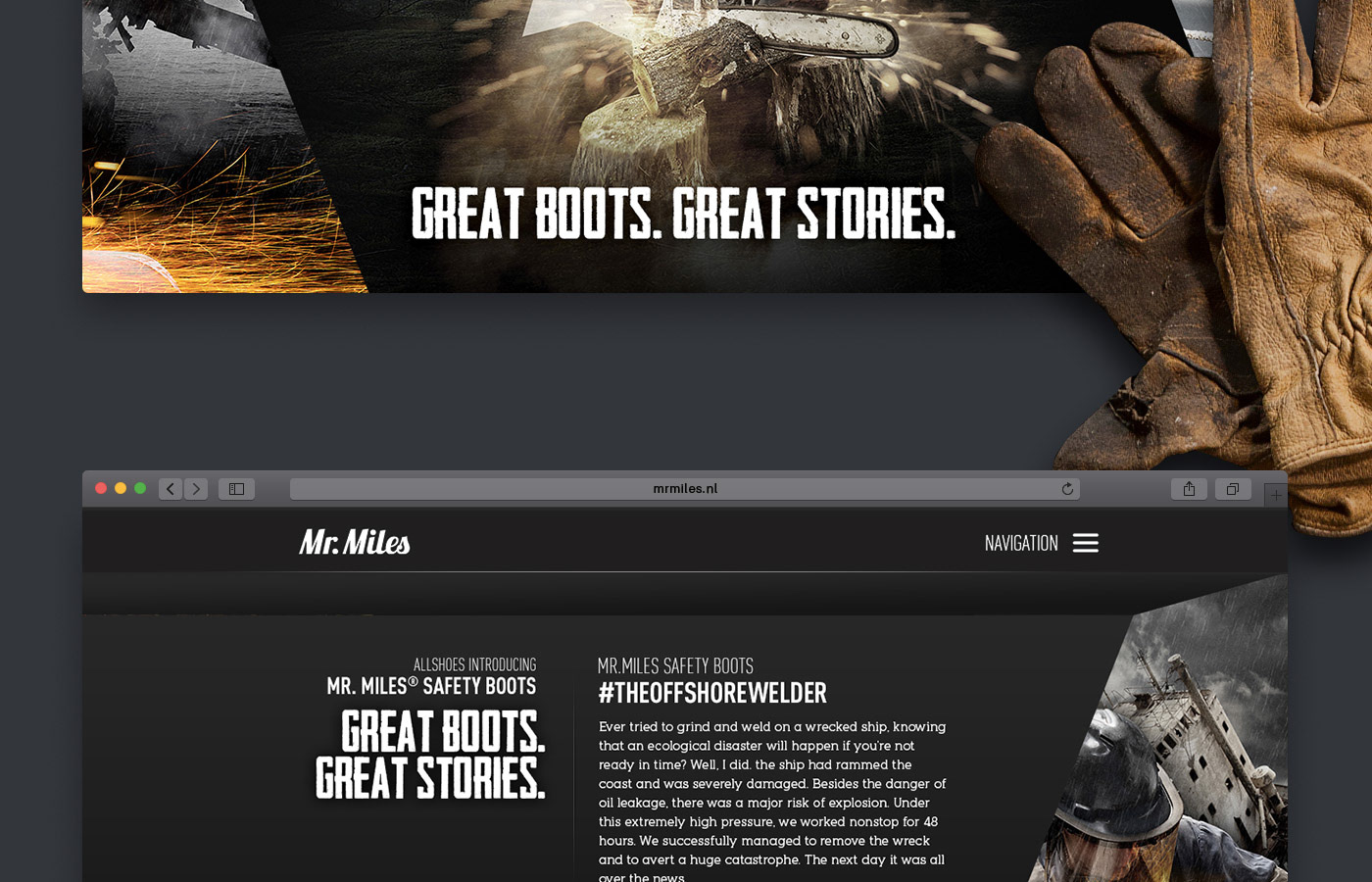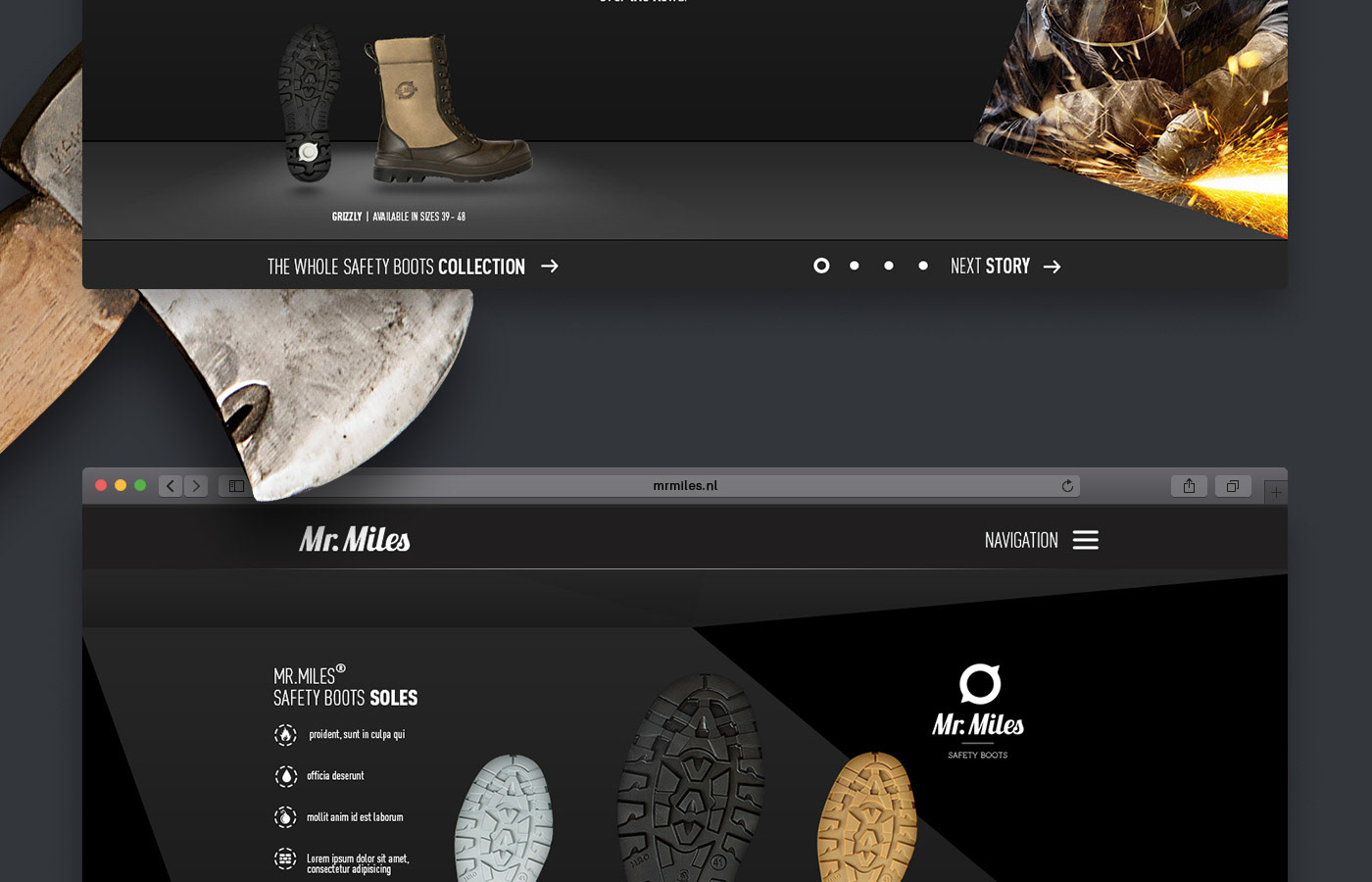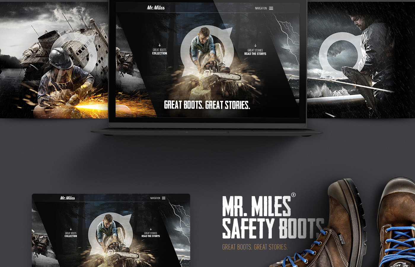 Concept, key visuals and webdesign for the Mister Miles - Safety Boots.