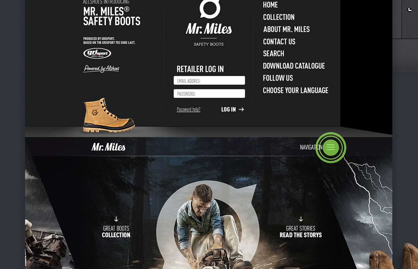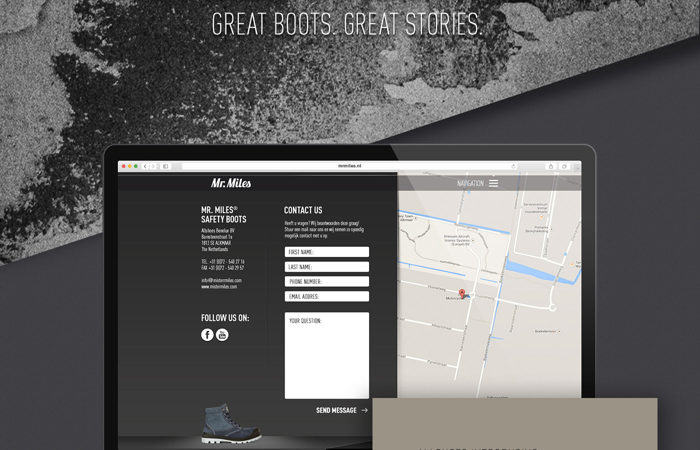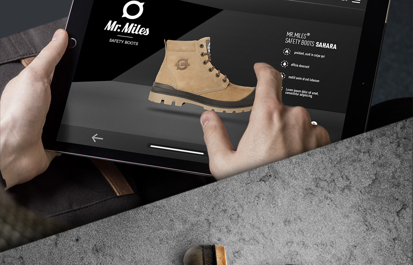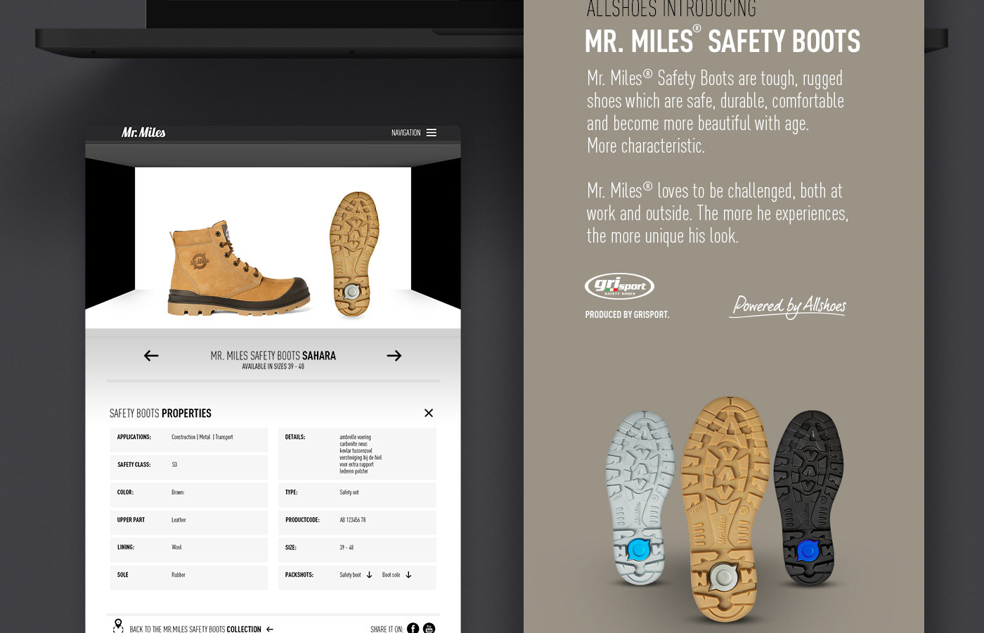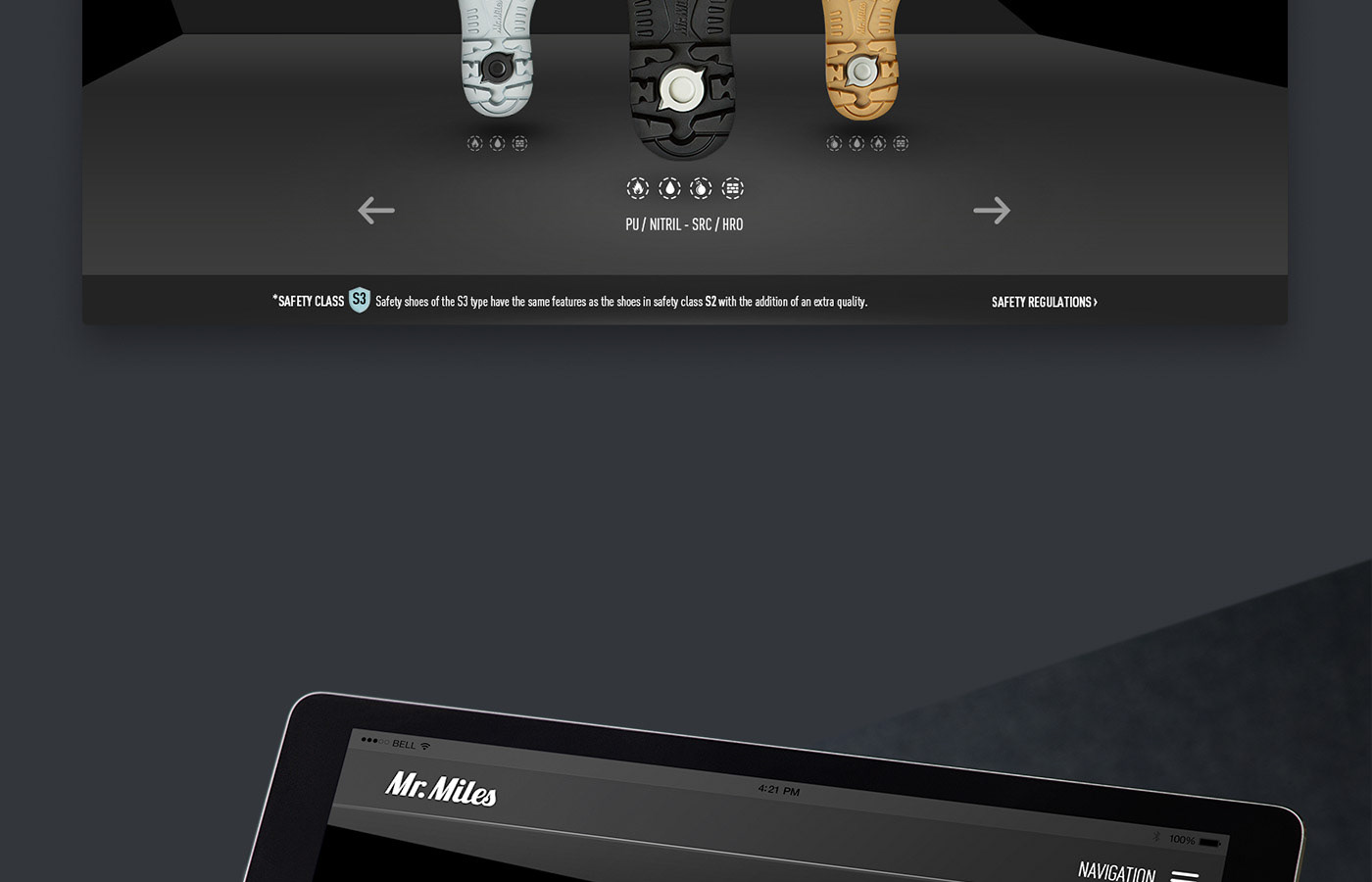 Concept, key visuals and webdesign for the Mister Miles - Safety Boots.