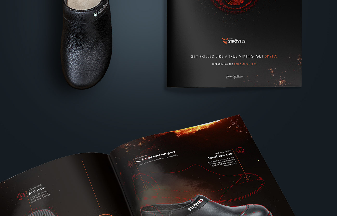 Concept, key visuals and branding design for Strövel's - Skyld Safety Clogs.
